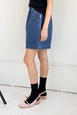Introducing our must-have: the City Skirt. Crafted from premium cotton denim, this mini skirt is a feminine parallel to the City Short. With its elasticated waistband for a comfortable yet flattering fit and functional pockets for added practicality, it’s perfect for city strolls or casual outings. Pair it with The Little Boy Tee tucked in and the Poche Top layered over top for effortless style.