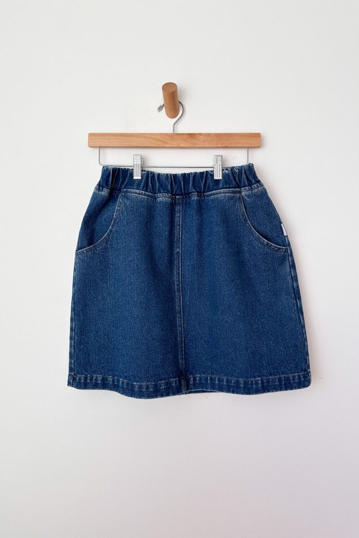 Introducing our must-have: the City Skirt. Crafted from premium cotton denim, this mini skirt is a feminine parallel to the City Short. With its elasticated waistband for a comfortable yet flattering fit and functional pockets for added practicality, it’s perfect for city strolls or casual outings. Pair it with The Little Boy Tee tucked in and the Poche Top layered over top for effortless style.