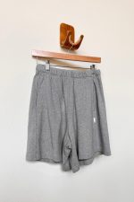 Large: Waist 14” relaxed, Hip 24″, Inseam 5”, Leg Opening 13 1/2″, Rise 11 1/2″