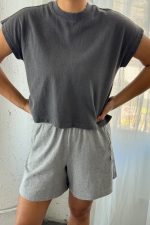 Dream shorts inspired by retro basketball shorts — Crafted from a heavy weight cotton knit, the Flared Basketball Shorts feature an elasticated, high waist with an A-line shape. They’re full coverage, yet flattering and designed with a slightly shorter outseam and perfect mid thigh length.
