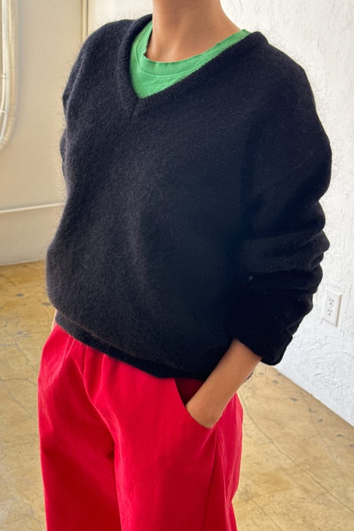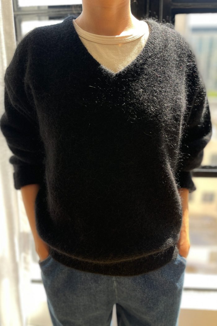 Cozy layering made simple in the James Mohair Sweater. Unlike your everyday V-neck, this sweater is made from an ultra cozy, mohair wool blend to keep you warm throughout the seasons. It features a timeless silhouette that’s slightly oversized and maintains a boxy fit for easy layering without any itchiness in sight. The perfect piece to elevate any look without compromising comfort.