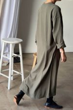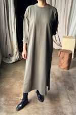 The Sunday Dress pays tribute to our bestselling Sunday Tee and Her Dress, offering the perfect blend of comfort and style. With a menswear-inspired fit and a subtle, playful high side slit, this ankle-length dress effortlessly combines masculine details with feminine flair. The sleeves are wide enough to roll up, making it an easy addition to your wardrobe staples.