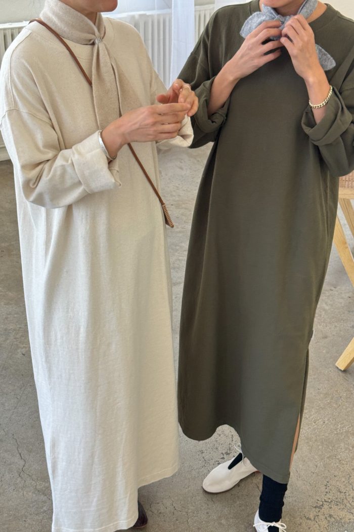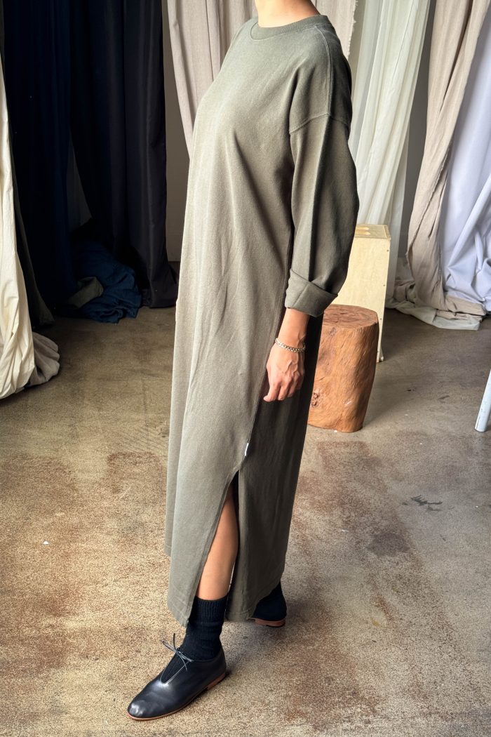 The Sunday Dress pays tribute to our bestselling Sunday Tee and Her Dress, offering the perfect blend of comfort and style. With a menswear-inspired fit and a subtle, playful high side slit, this ankle-length dress effortlessly combines masculine details with feminine flair. The sleeves are wide enough to roll up, making it an easy addition to your wardrobe staples.
